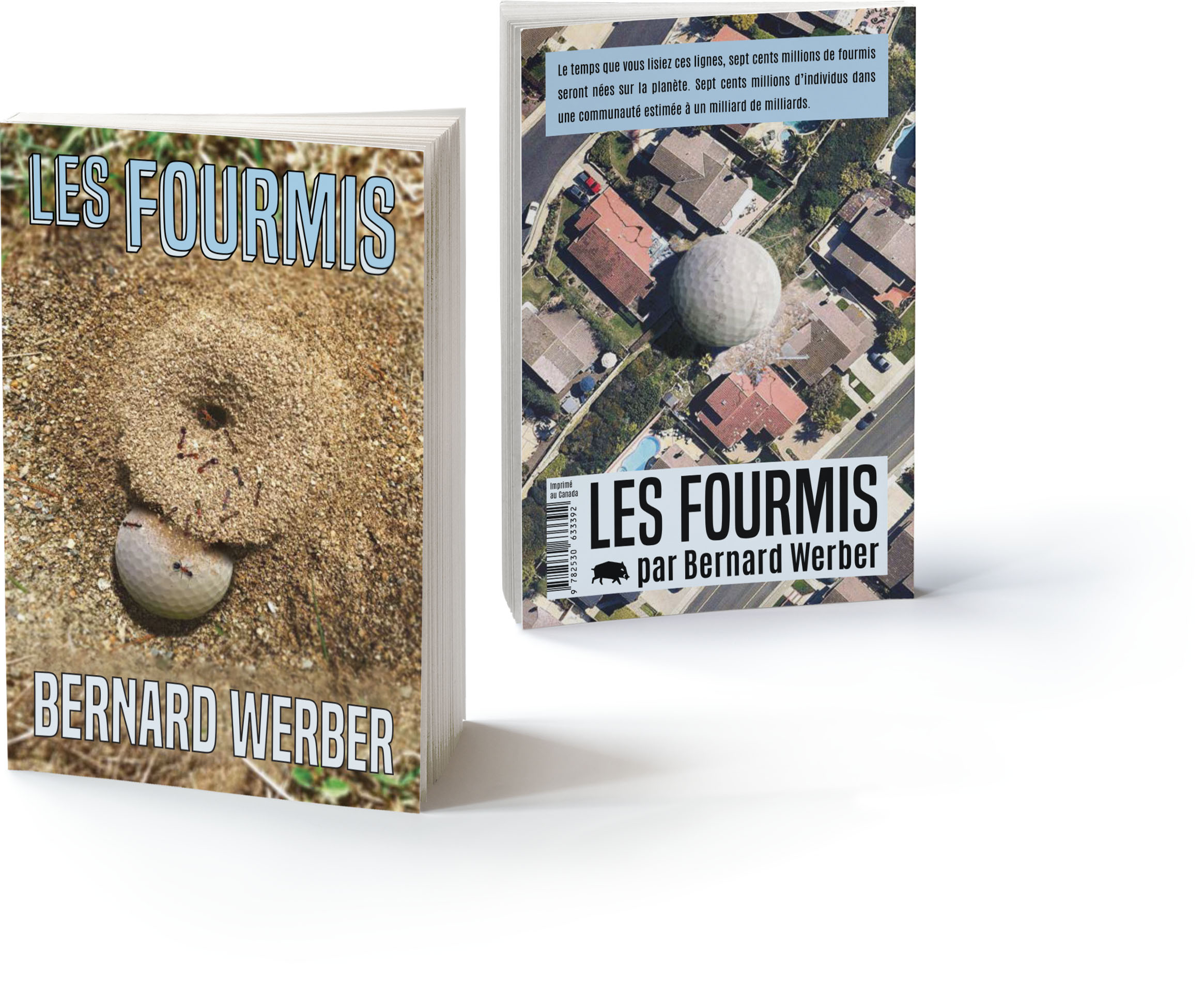 BRIEF : Créer une couverture de livre. TRAVAIL : Ce fut principalement untravail de Photoshop pour insérer desballes de golf dans une fourmilière etdans un quartier résidentiel.